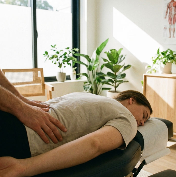Travail structurel sur le bassin, le sacrum et les lombaires : correction des restrictions articulaires et des déséquilibres posturaux (ex. rotation du bassin ou restriction du sacrum).